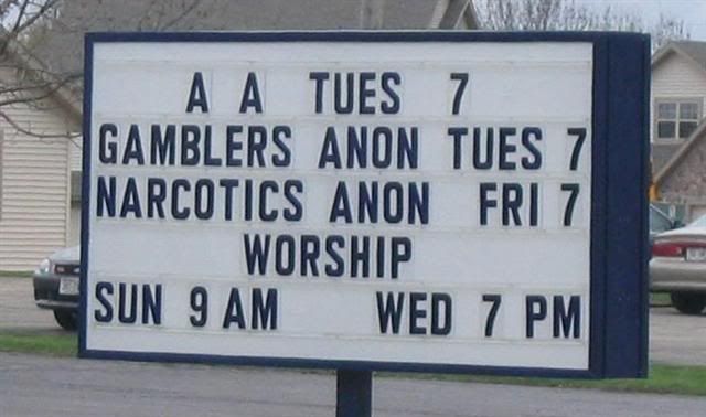 I realize everyone has their vices, but this Lutheran church on Hwy. 60 seems to be dealing with a lot of them!